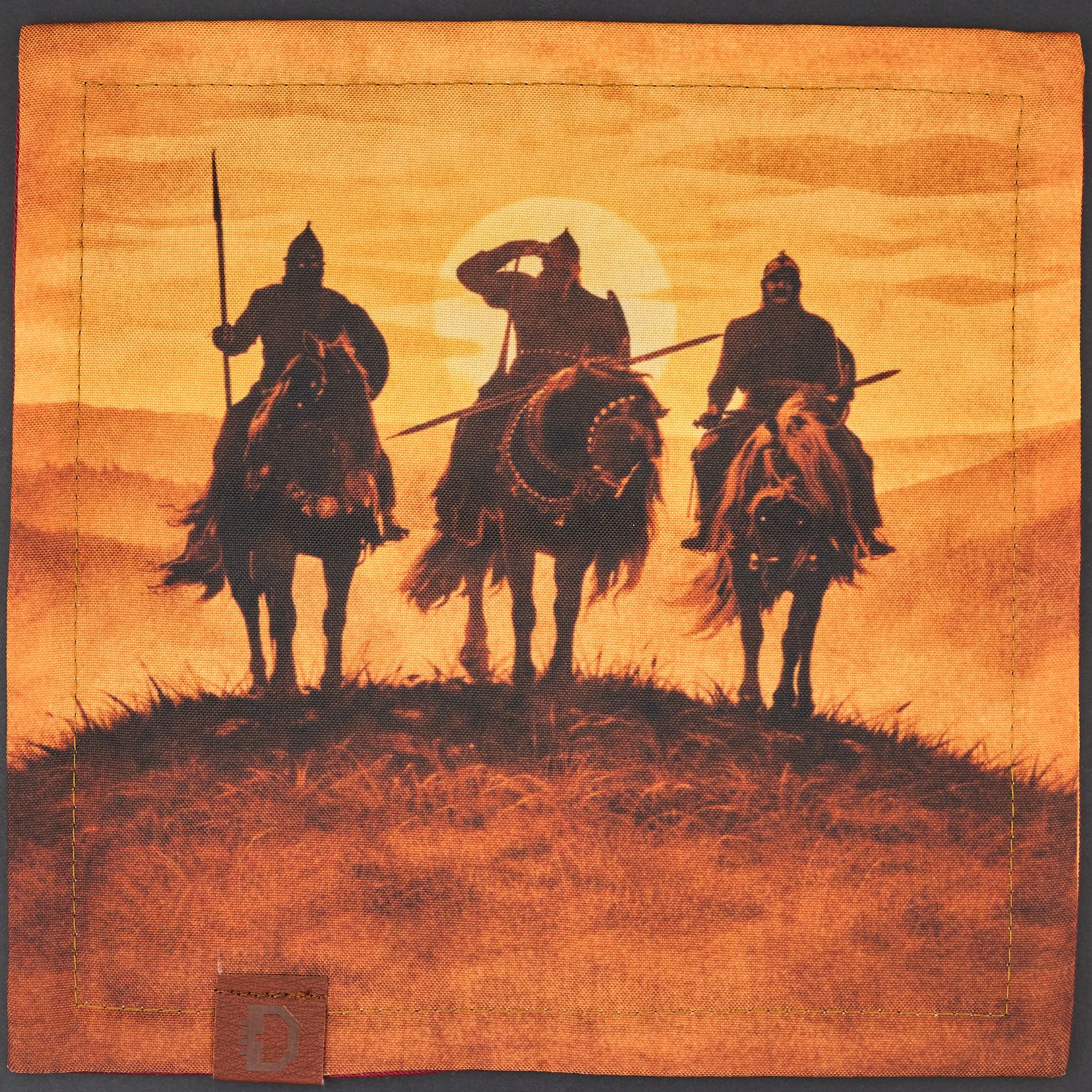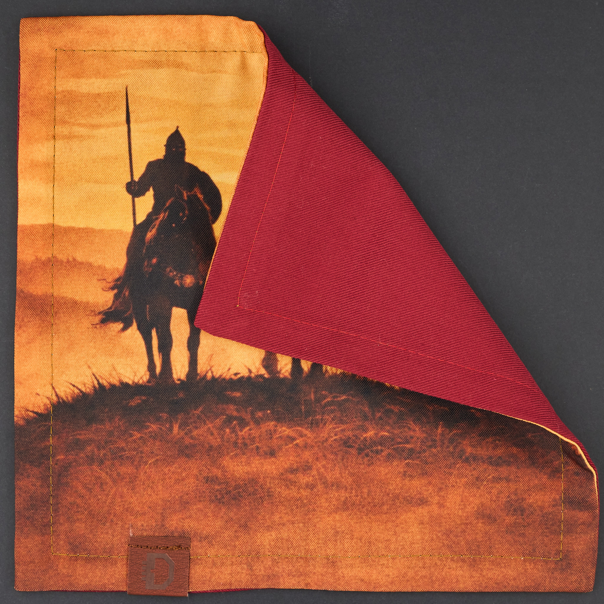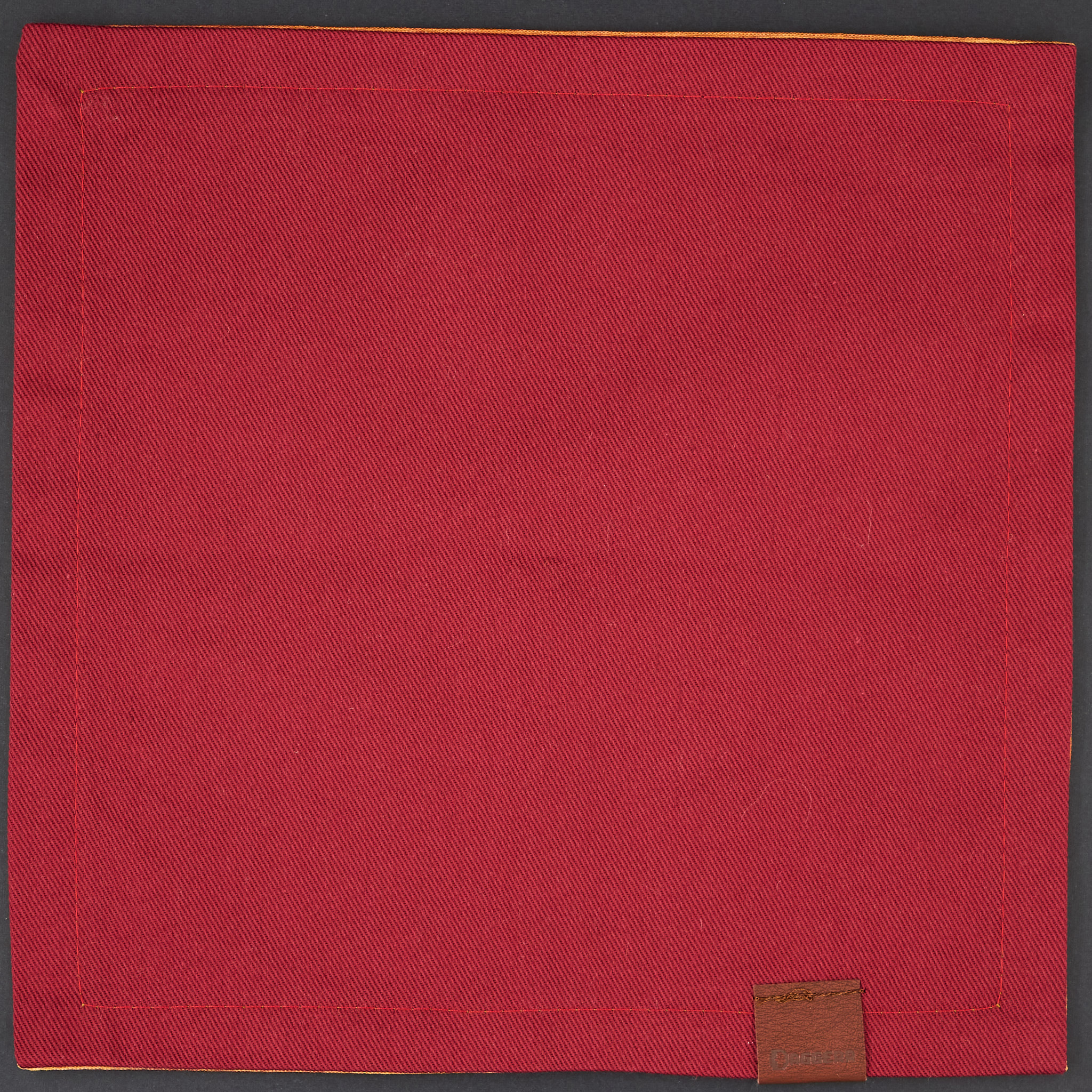 Лицевая сторона с принтом выполнена из габардина, обратная — из льна. Размеры хэнка: 24 см на 24 см.
